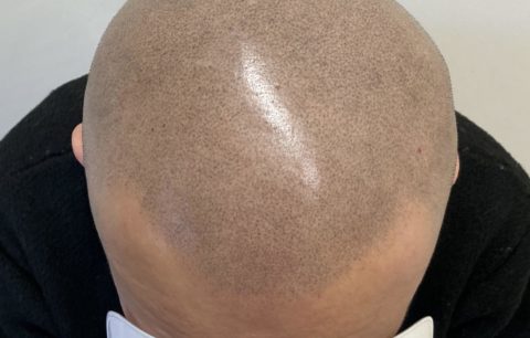 私は地肌が白く、自毛は短くしているのが好きなので、スキンヘッド風のヘアタトゥーを頼みました。